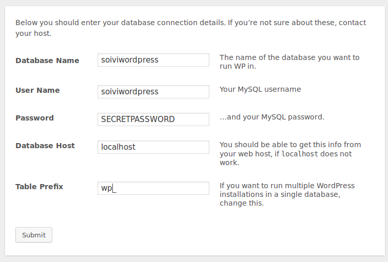 GRANT ALL ON soiviwordpress.* TO soiviwordpress@localhost IDENTIFIED BY "SECRETPASSWORD";